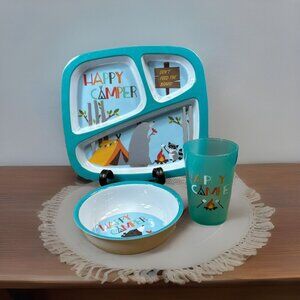 3 Piece Bass pro shop happy camper child’s Divided Plate Bowl And Cup Set