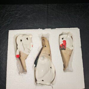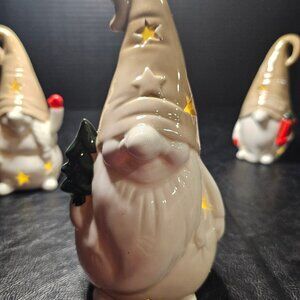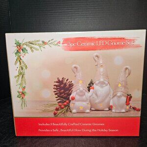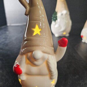 3 Piece Ceramic LED Gnome Set Light Up Built In LED Battery Holiday Home Decor
