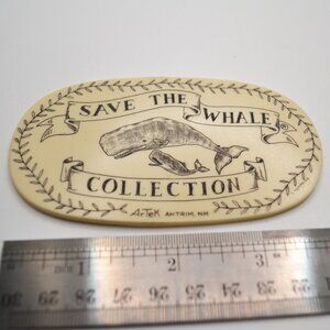 3 pieces of faux scrimshaw. One is stamped Artek Save The Whale made in Antrim New Hampshire. The other two have no information stamped on them.