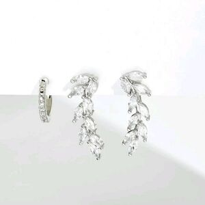 Rhinestone Silver Earrings with additional ear cuff. Perfect Condition.