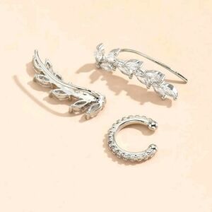 Rhinestone Silver Earrings with additional ear cuff. Perfect Condition.