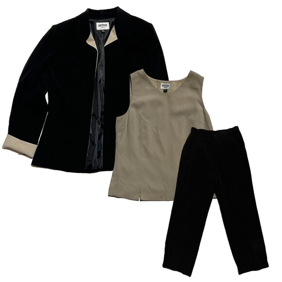 3 Piece Kasper Petite Women Black and Beige Blazer, Inner Vest and Pants sz 10P