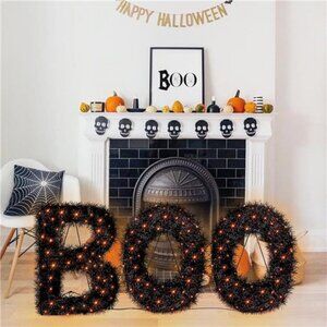 【 HALLOWEEN PARTY DECORATIONS】This pre-lit boo sign is sure to be an attractive addition for Halloween indoor and outdoor decoration! Use this Halloween sign as a party decoration or a door decoration to invite your friends to join the crazy Halloween party!