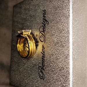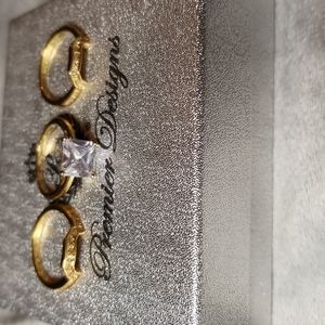 Vintage 3 piece ring with square cut gemstone. I am unsure what size it is but it is smaller than the size I wear which is a 7. Please note that the box pictured is for display purposes only. Comes from a smoke free home.