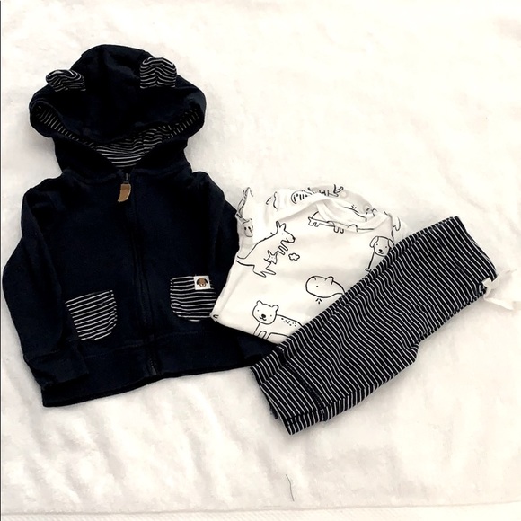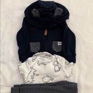 Navy & White Set with Jacket, Onesie & Pants. Jacket has puppy ears on hood. Worn Once