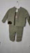 Cute 3 piece boys set. Overalls are in great shape. The shirt has a small stain and missing a snap button in back closer. You can reference the pictures above. Flaws are very discreet. Both overalls n jacket are lined in cotton material, making it easy for your little one to move around in and stay comfortable. Overalls snap open at bottom for easy changing access.