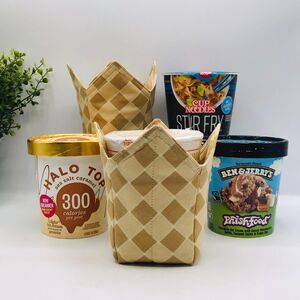 The pint-sized cozies are perfect for your morning cup of oatmeal or Ramen chicken noodle cups, or a pint of ice cream to keep your hands from getting cold.