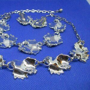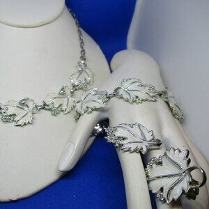 3 Piece Set SARAH COVENTRY Whispering Leaf Necklace 1967 White Enamel Grape Leaf