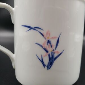 3 Piece Tea Cup Mug with Infuser Strainer and Lid Spring Iris Flowers Pink Blue.