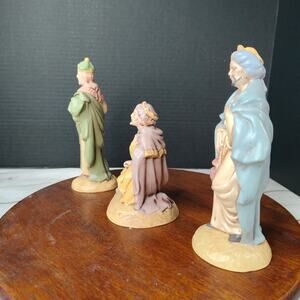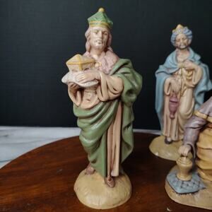 3 Piece Vintage Hand Painted Ceramic Nativity 3 Wise Men 1974 Atlantic Mold. Signed BB. I have other pieces from the set that are dated 1974. Glaze is a fairly matte finish with a slight shine. Beautifully done! Preowned and in good condition. One of the wise men has 2 chips on the pedestal/base. See pics. No other chips or cracks. From a non-smoking home.