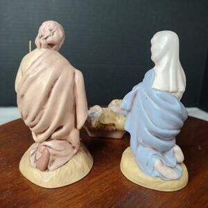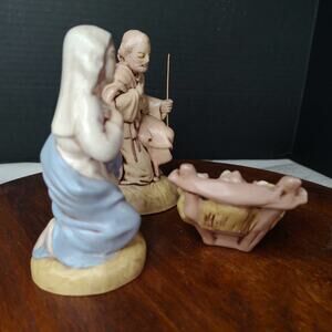 3 Vintage Hand Painted/Glazed Ceramic Nativity. Baby Jesus in a manger with kneeling Mary and Joseph. Atlantic Mold. Signed BB. I have other pieces from the set that are dated 1974. Glaze is a fairly matte finish with a slight shine. Beautifully done! Preowned and in excellent condition with no chips or cracks. From a non-smoking home.