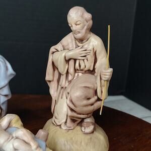 3 Piece Vintage Hand Painted Ceramic Nativity Baby Jesus, Mary, Joseph 1974