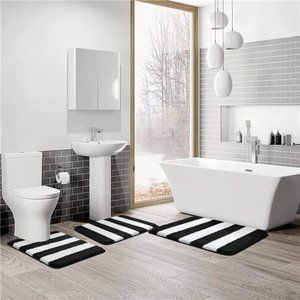 🧿3 In 1 Bath Mat Set: Each of our bath mat set with 3 rugs,include 1 Big Rug Mat(32"x20"), 1 Small Rug Mat(17"x24") ,1 U Shape Rug Mat(24"x20", the entire 3-in1 set offers a complete solution for bathtub or stall, save yourself the trouble of matching,this is a very cost-effective bathroom rug set.