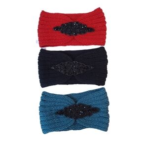 3 Pieces Set Headband Womens Winter Ear Warm Crystal Beads Turban Headwrap New
