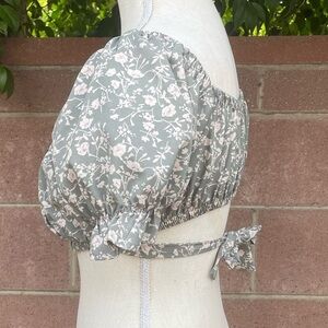 TOP 3: 2BELLA Puff Sleeve Top Crop Floral Print Wrap or Tie Front Blouse woven 100% polyester fabric