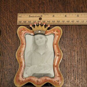 3 Green Tree Gallery Pink enamel frames with rhinestone crown on top. New, never used.