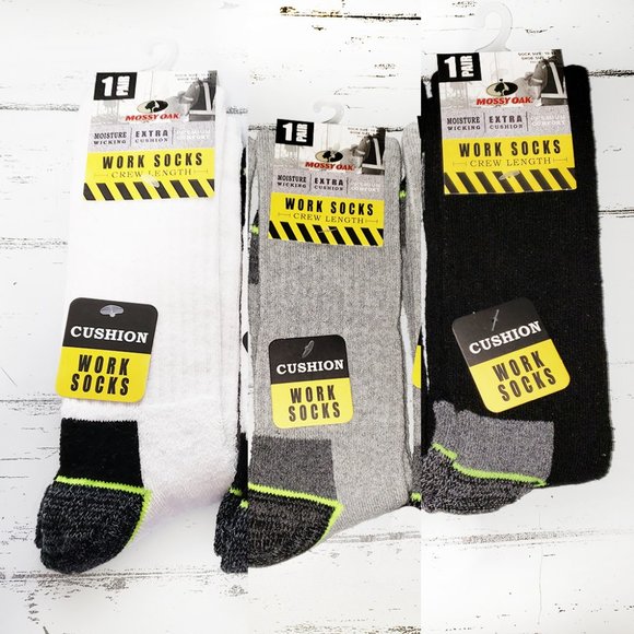 3 Pk Men's Mossy Oak Work Socks Moisture Wicking Gray, Black, OR White