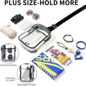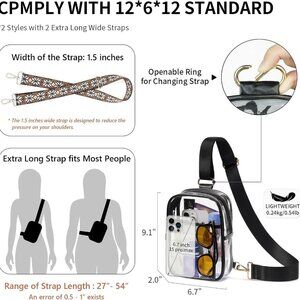 Clear Bag Stadium Approved & Get Through Security Easily - Size 6.7" x 2" x 9.1", comply with stadium regulations . Approved for use where regulations require the Small clear bag such as: baseball game, soccer game, concert, music festival, football match, workplaces, outdoor activities, etc. Clear crossbody bags for women will allow you to quickly go through security check.