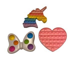 3 Pop It Fidget Dimple Heart Unicorn Bow.