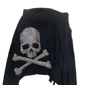 3 Queen Black Fringe Rhinestone Skull Parachute Pants