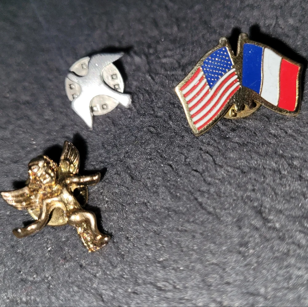 1. French & American gold flag pin