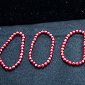 Lovely Red Pearl Stretch Bracelets wear one or all 3 Double band construction
