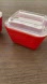 Timeless Pyrex glassware. 3 Red Small Vintage Pyrex Primary Color #501 Refrigerator Dishes "Fridgies" with Lids