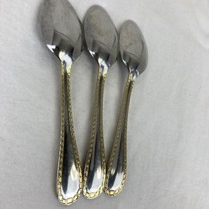 3 Retroneu GOLD ACCENT Chain 6”Spoons 18/8 Korea Stainless Flatware-GreatQuality