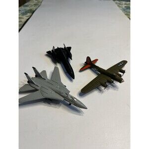 The product is a set of three die-cast airplanes from Road Champs, including a B17-G bomber, F-14 Tomcat, and SR-71 NASA reconnaissance plane. These collectible aircraft are made of high-quality material and are intricately detailed, making them great for display or play for aircraft enthusiasts and collectors. The Road Champs brand ensures a level of craftsmanship and authenticity in replicating these iconic aircraft.