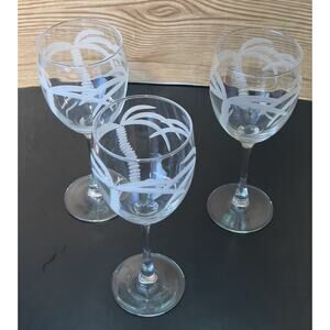 3 Rolf Retired Rolf Glass Palm Tree Etched Wine Glasses 8”. These glasses are in excellent condition. See our store for other items in this collection.