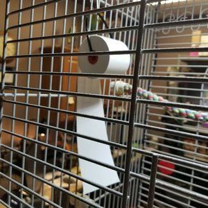 Hang a roll of this paper in your birds cage and let them have fun.
