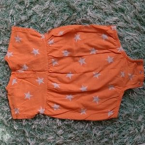 Orange Short Sleeve Romper 'Primary' - Good condition see photo with one mark on back.