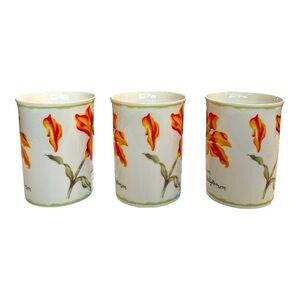 3 Rose of England Fine Bone China Lilium Bulbiferum Tea Cups Mug Porcelain