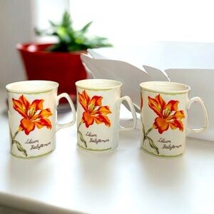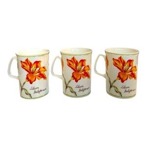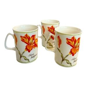 3 Rose of England Fine Bone China Lilium Bulbiferum Tea Cups Mug Porcelain