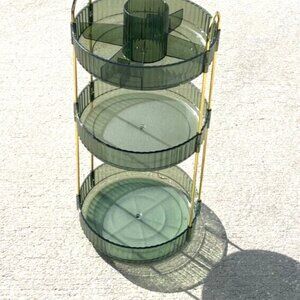 3 Rotating Shelves Storage Container Make Up Spices 12 1/2" x 9 1/2 Gray Plastic