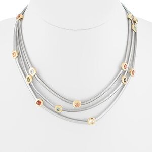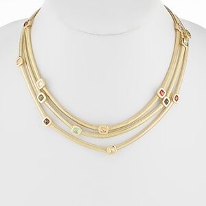 Elevate your elegance with this stunning three-row station chain necklace, adorned with sparkling cubic zirconia for a touch of sophistication. Crafted from high-quality metal and available in both silver and gold, this 17-inch necklace features a convenient magnetic closure, ensuring both style and ease of wear.