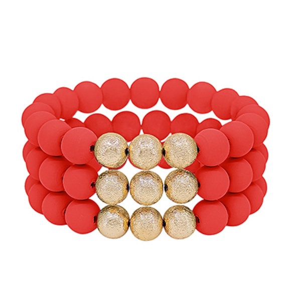Triple Row Satin Ball Accent Clay Bead Bracelet