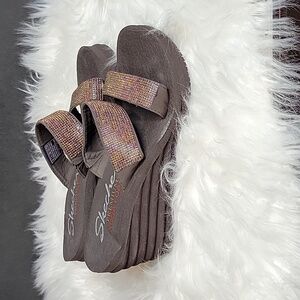 3. SKECHERS Lil Bloom Yoga Cushion Wedge Sandal Size 6