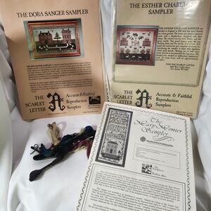 3 Sampler Reproductions Ester Charlton Dora Sanger Mary Monier Fibers B27