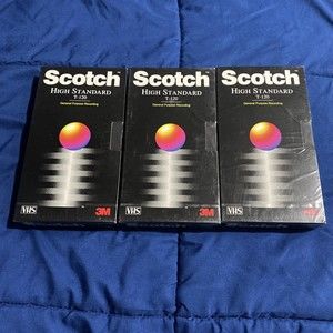 I have for sale a lot of 3 Scotch VHS Videocassette Blank Tapes High Standard T-120 6 Hour that are New & Sealed. If you have any questions, please ask. I do combine shipping. Check out my other items.