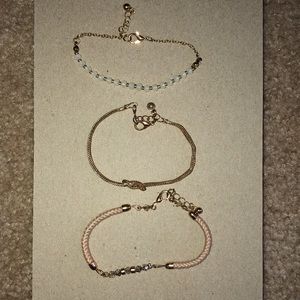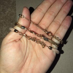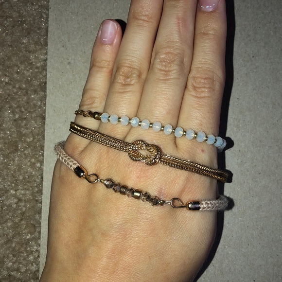 3 separate bracelets. Nude and gold. Easy simple everyday wear. Very lightly used