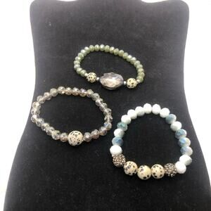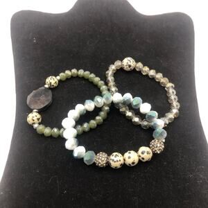 3 Set Gemstone Speckled Sparkling Beads Multi Size Gemstones Stretchy Bracelets