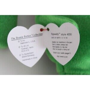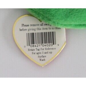 From the authentic 1993 collection. This collectible plush toy is part of the Beanie Babies character family, manufactured in China by Ty. It is a sought-after item for collectors due to the tag errors and its vintage appeal.