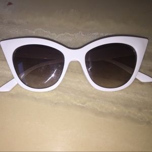 White, Speckled, and Polka Dot winged sunglasses, never worn, white has little scratch on right lense