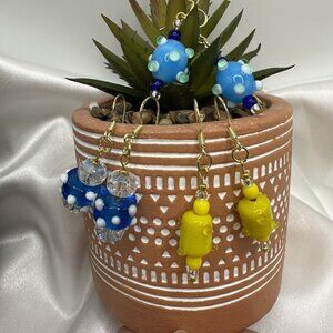 2 Sets REIMAGINED Venetian Lampwork Glass Bead Dangle Earrings 18K GP 925 Silver