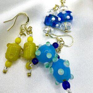 3 Sets REIMAGINED Venetian Lampwork Glass Bead Dangle Earrings 18K GP 925 Silver