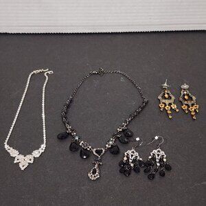 3 Sets Vintage Crystal Rhinestone Teardrop Necklace & Crystal Dangle Earrings