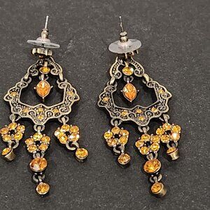 Beautiful Vintage Earrings Crystal Dangle Amber Rhinestone Chandelier Victorian Pierced