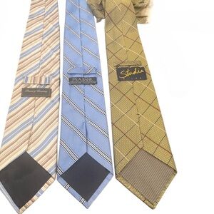 3 Silk Ties Jos A Bank, Studio & Daniel &Co. Blue tan brown 100% Silk Great Cond