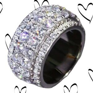 ❤️ 1 Round Silver Plated Paved with Zirconia Stones - Size 6 Men